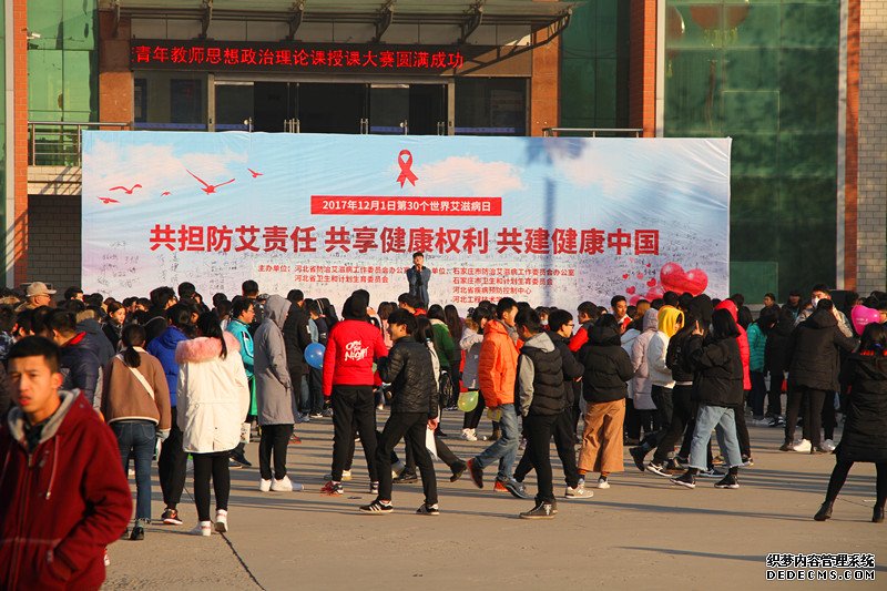 2017年12月1日是第30个“世界艾滋病日”。今年“世界艾滋病日”宣传活动主题是“共担防艾责任,共享健康权利,共建健康中国”。当天上午,由省防艾办、省卫生计生委与市防治艾办、市卫生计生委在河北工程技术学院联合举办了“世界艾滋病日”主题宣传活动。省卫生计生委党组成员、省中医药管理局局长姜建明,省疾控中心主任崔泽,市卫生计生委调研员林慧芳,市疾控中心主任赵川等领导出席活动。共有22家单位、150余名工作人员和1000余名大学生志愿者参加活动。
